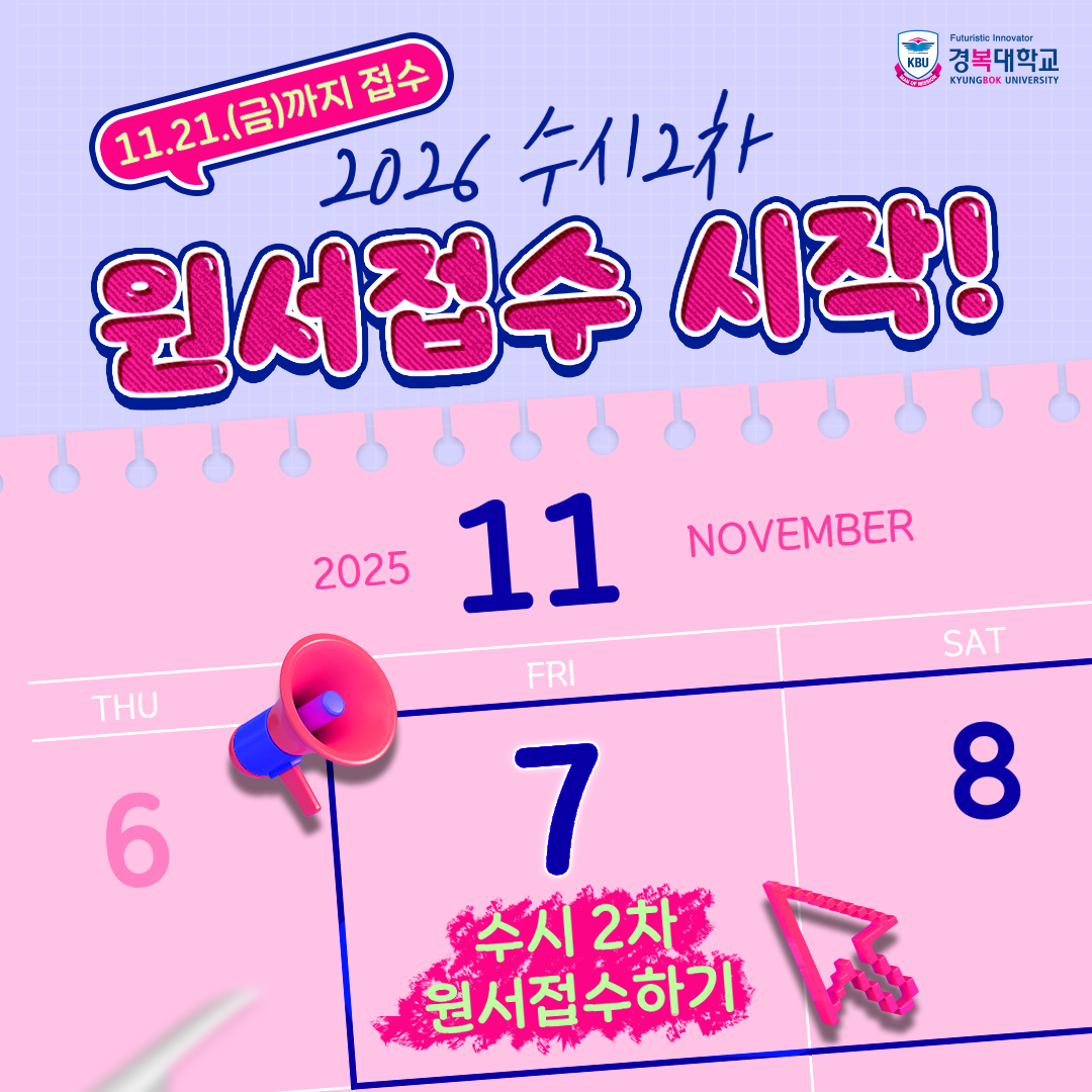 수시2차 잠재력을 전문가로, 경복대학교 수시2차 수시2차 모집요강 입시일정 입시결과 원서접수 지원현황 공지사항 입학상담 입시일정 1080년 1081 1082년 전체 01월 02월 03월 04월 05월 06월 07월 08월 09월 10월 11월 12월 월간일정 연간일정 1081년 10월 학사일정 달력으로 일별 일정 제공 일 월 화 수 목 금 토 SUN MON TUE WEN THU FRI SAT 1 2 3 4 5 6 7 8 9 10 11 12 13 14 15 16 17 18 19 20 21 22 23 24 25 26 27 28 29 30 31 상기 일정은 사정에 따라 변경 될 수 있습니다.