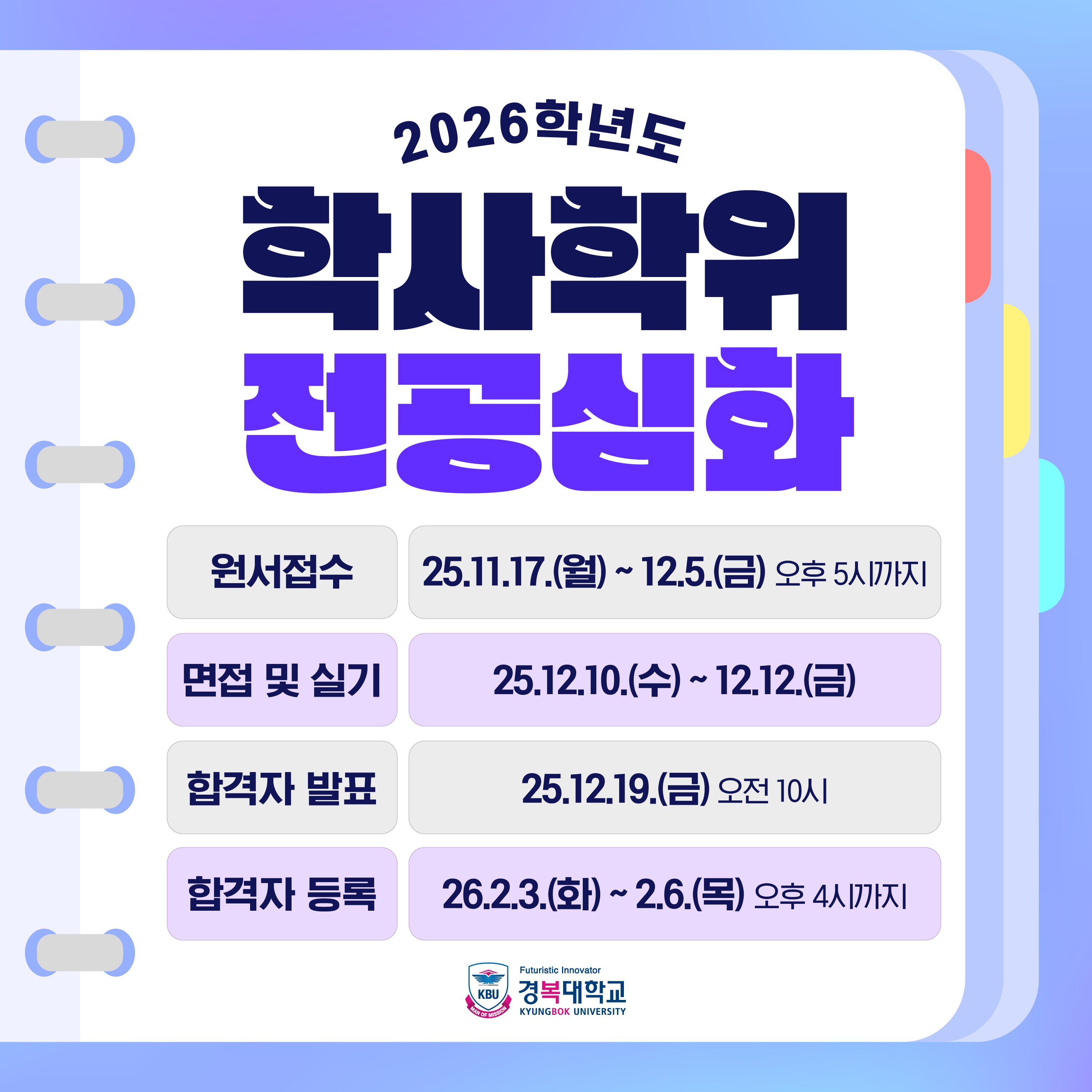정시모집 잠재력을 전문가로, 경복대학교 정시모집 정시모집 모집요강 입시일정 입시결과 원서접수 지원현황 공지사항 입학상담 입시일정 952년 953 954년 전체 01월 02월 03월 04월 05월 06월 07월 08월 09월 10월 11월 12월 월간일정 연간일정 953년 12월 학사일정 달력으로 일별 일정 제공 일 월 화 수 목 금 토 SUN MON TUE WEN THU FRI SAT 1 2 3 4 5 6 7 8 9 10 11 12 13 14 15 16 17 18 19 20 21 22 23 24 25 26 27 28 29 30 31 상기 일정은 사정에 따라 변경 될 수 있습니다.